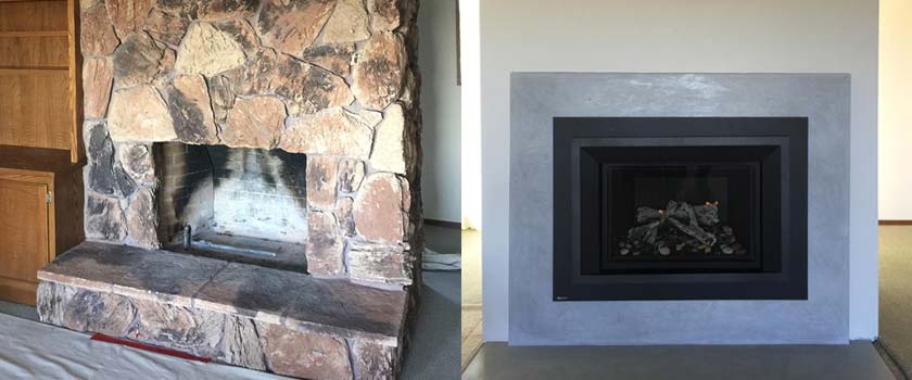 You have a new insert, but an old masonry fireplace. Now what? Refinishing offers home owners a dramatic transformation without a dramatic price tag. If you need photo inspiration, head to Pinterest and Houzz for thousands of inspiring fireplace refinishing photos, or check out customer install photos in the idea galleries of manufacturer websites. A few “hot right now” refinishing trends include: