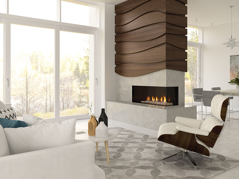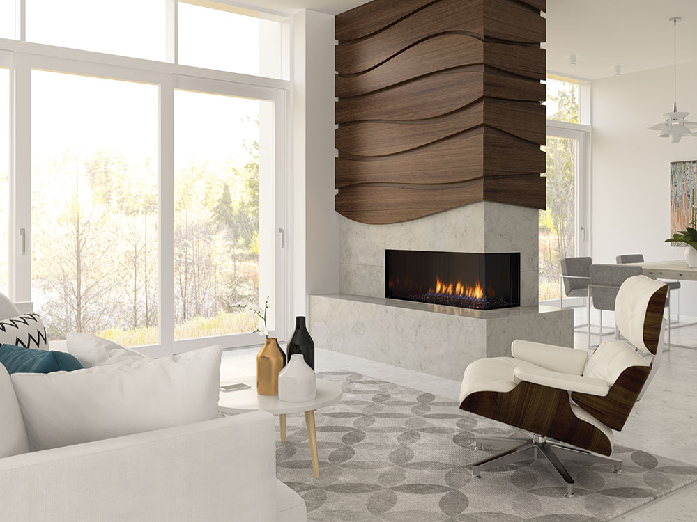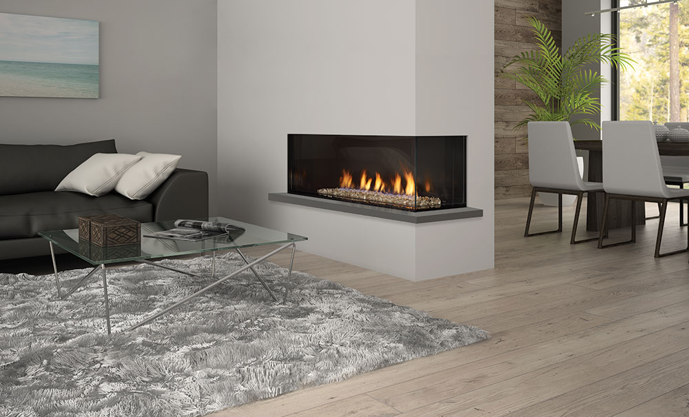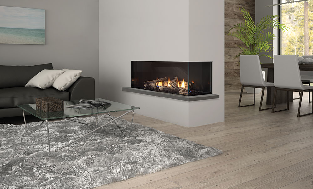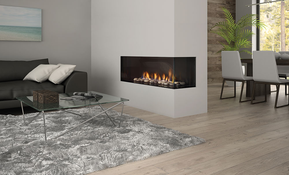 The Regency City Series Chicago corner two sided gas fireplace allows you to have design flexibility creating multiple views from either side of the room.