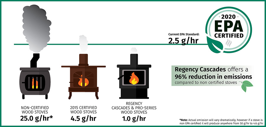 In 2020 the second step of NSPS standard went into effect mandating that all wood burning appliances cannot produce more than 2.5 grams/hour of particulate matter. This is up to a 96% reduction in pre-certification levels and this latest standard has driven even more manufacturers out of the wood burning category – leaving only those who are able to create clean burning models. Many current models use two-stage or three-stage combustion technology to re-burn particulate matter, increase efficiency and maximize burntimes.