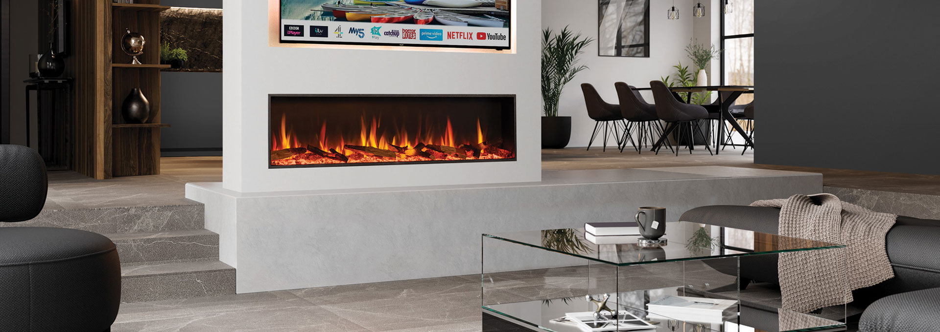 These electric fireplaces are a favourite for feature media wall installations with the optional Mood Lighting System, which can be placed almost anywhere you see fit.