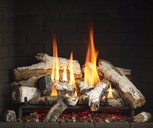 - Choose from a log grate and traditional style log package or contemporary crystal tray